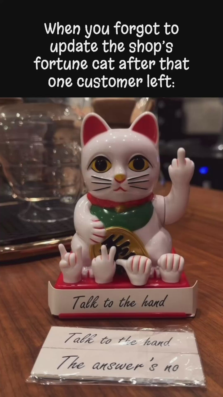 The latest twist on the iconic Fortune Cat 🐱, now boasting a bold middle finger gesture that's sure to inject a touch of humor and fortune into your space!